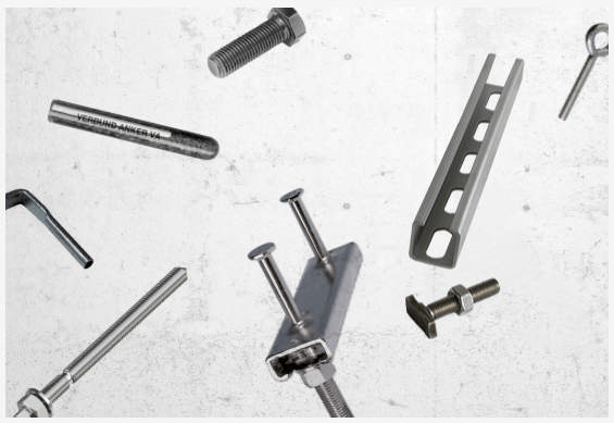 Ekspansionsbindere, montageskinner, balkonelementer, søjlesko, fastholdelsesbeslag, indstøbningsskinner.
